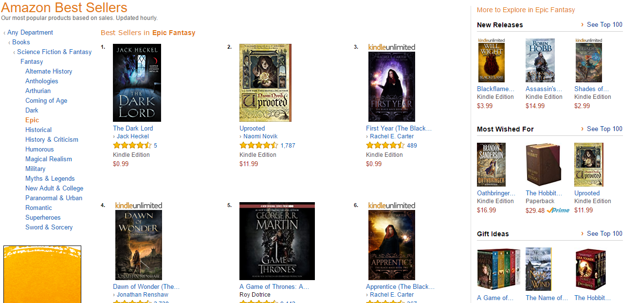 On to writing, this was the year of The Darker Lord, the sequel to the The Dark Lord. John Peck and I received a contract for that book and the third in the trilogy, The Darkest Lord. We spent the first half of the year writing it and are currently working on editing. Reflecting back over the year, I realize that we should have spent more time promoting The Dark Lord, but we were fortunate enough to have the book made an Amazon Deal of the Day on Kindle. On May 26, The Dark Lord hit # 1 in Epic Fantasy on the Kindle store, so as Jack Heckel, I can legitimately say I’m a bestselling author.